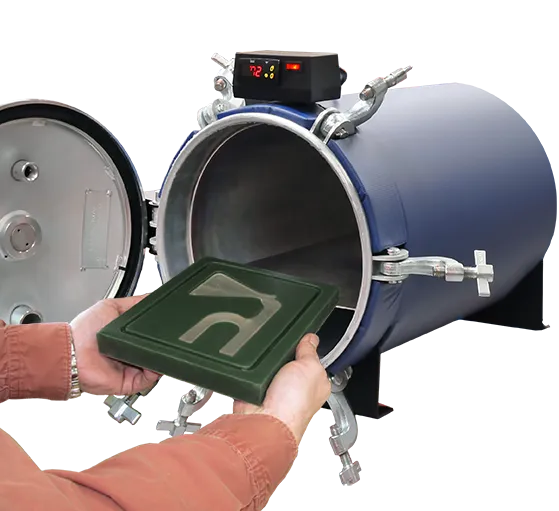 The X-11 Molding Chamber is a premium unit that combines a pressure tank and heating system into one sleek design. Manufactured at our Hanover, MA facility, these chambers are specifically engineered to assist liquid molders in producing flawless parts consistently. The integrated heat and pressure system ensures bubble-free castings and significantly reduces the final cure time by several days.